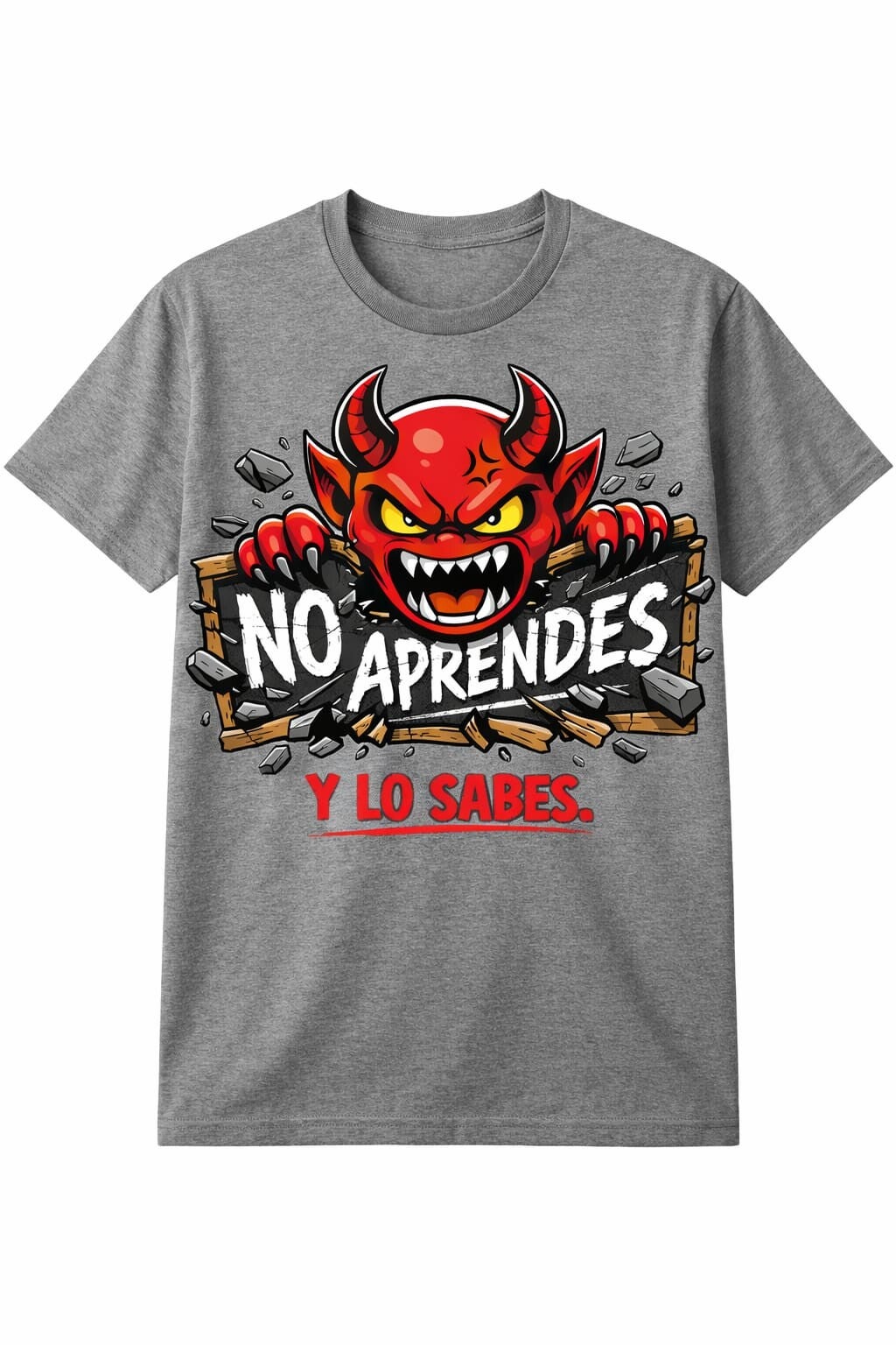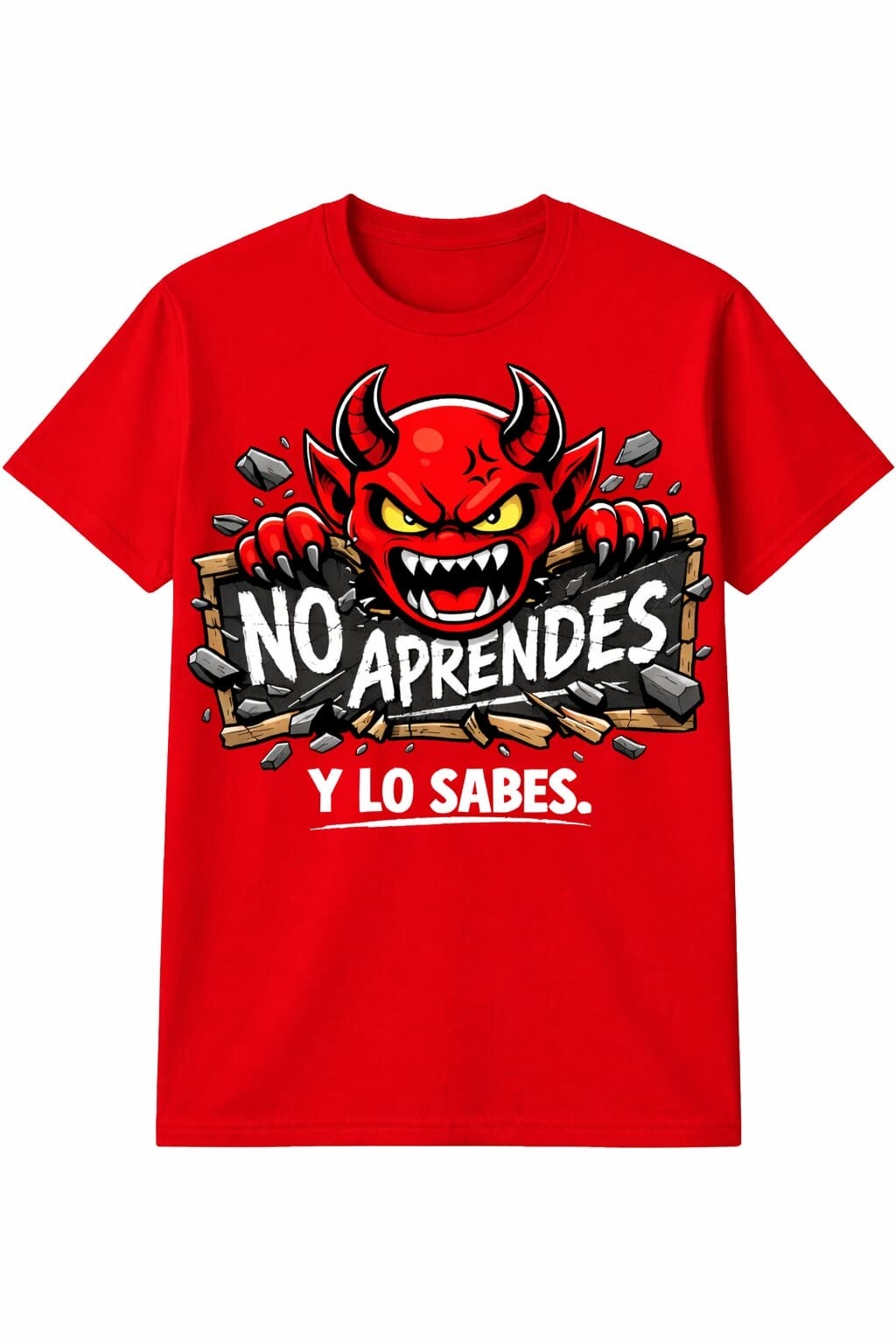 Un demonio rojo rompiendo la pizarra con una frase clara y directa: